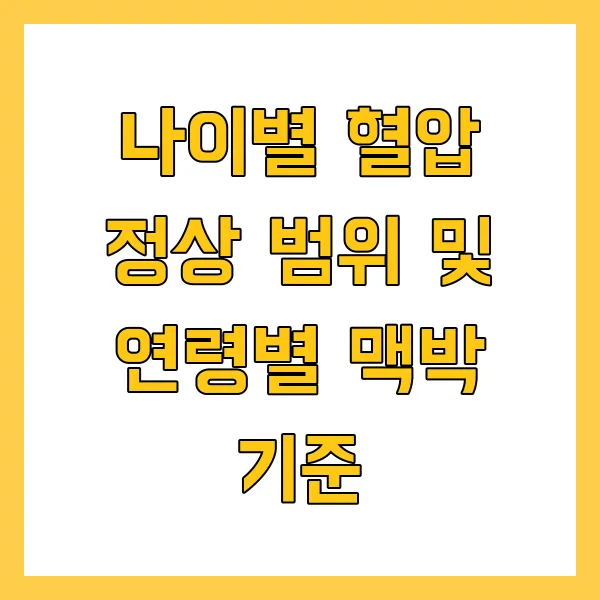 | 연령대 | 정상 혈압 범위 (수축기/이완기) | 정상 맥박 범위 (분당) |